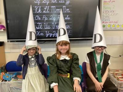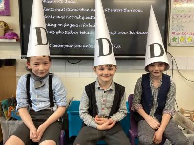 The afternoon brought even more excitement, as pupils enjoyed traditional Victorian games such as marbles and hoops. There was also some light-hearted discipline, with dunce hats being handed out—not only to the pupils but even worn by Mrs Simmons and Mrs Childs! This caused great laughter among the class and added a fun, memorable twist to the day.