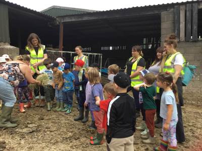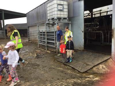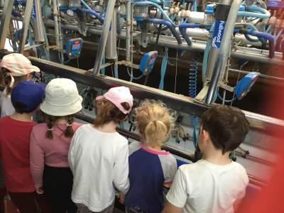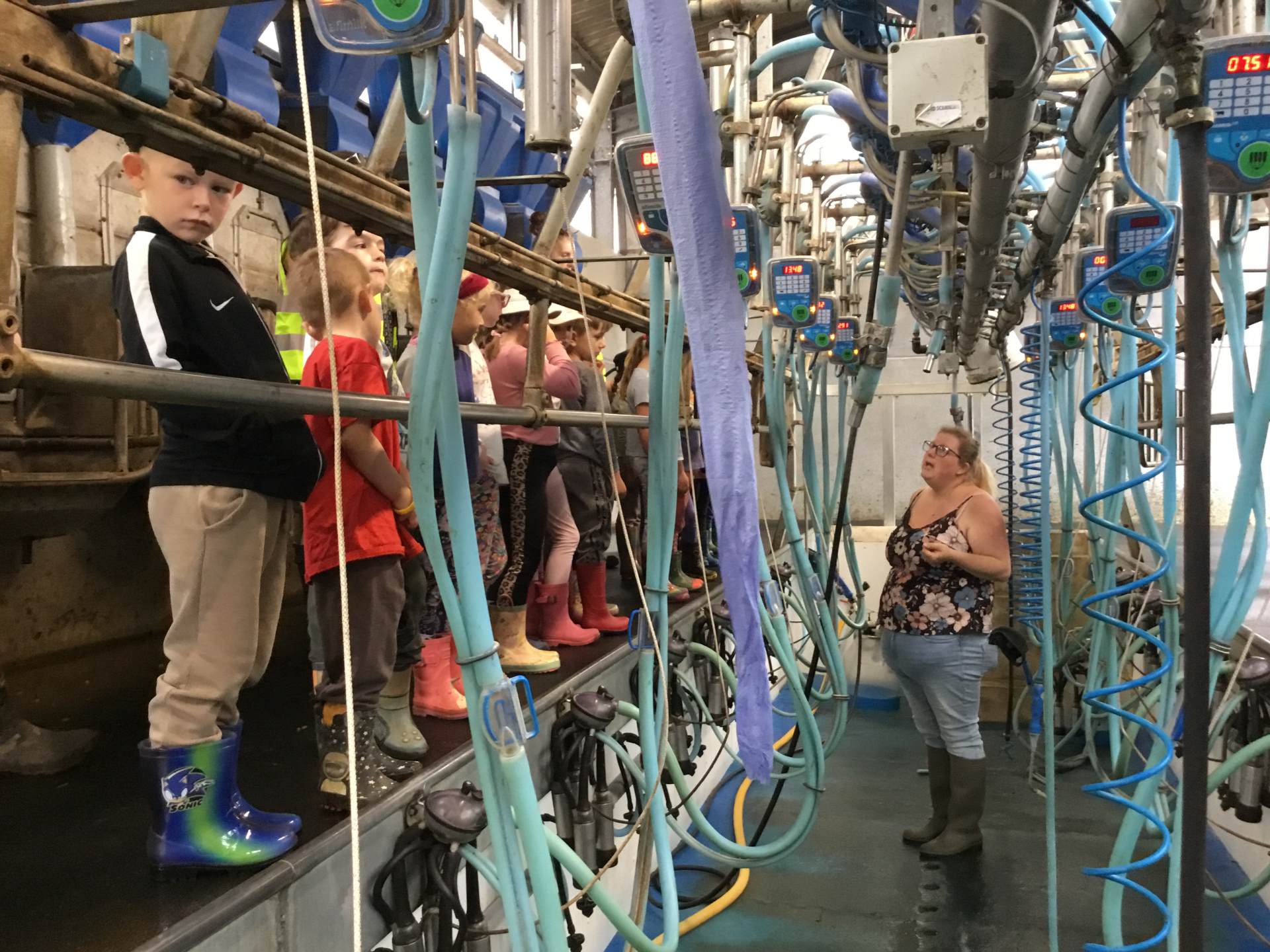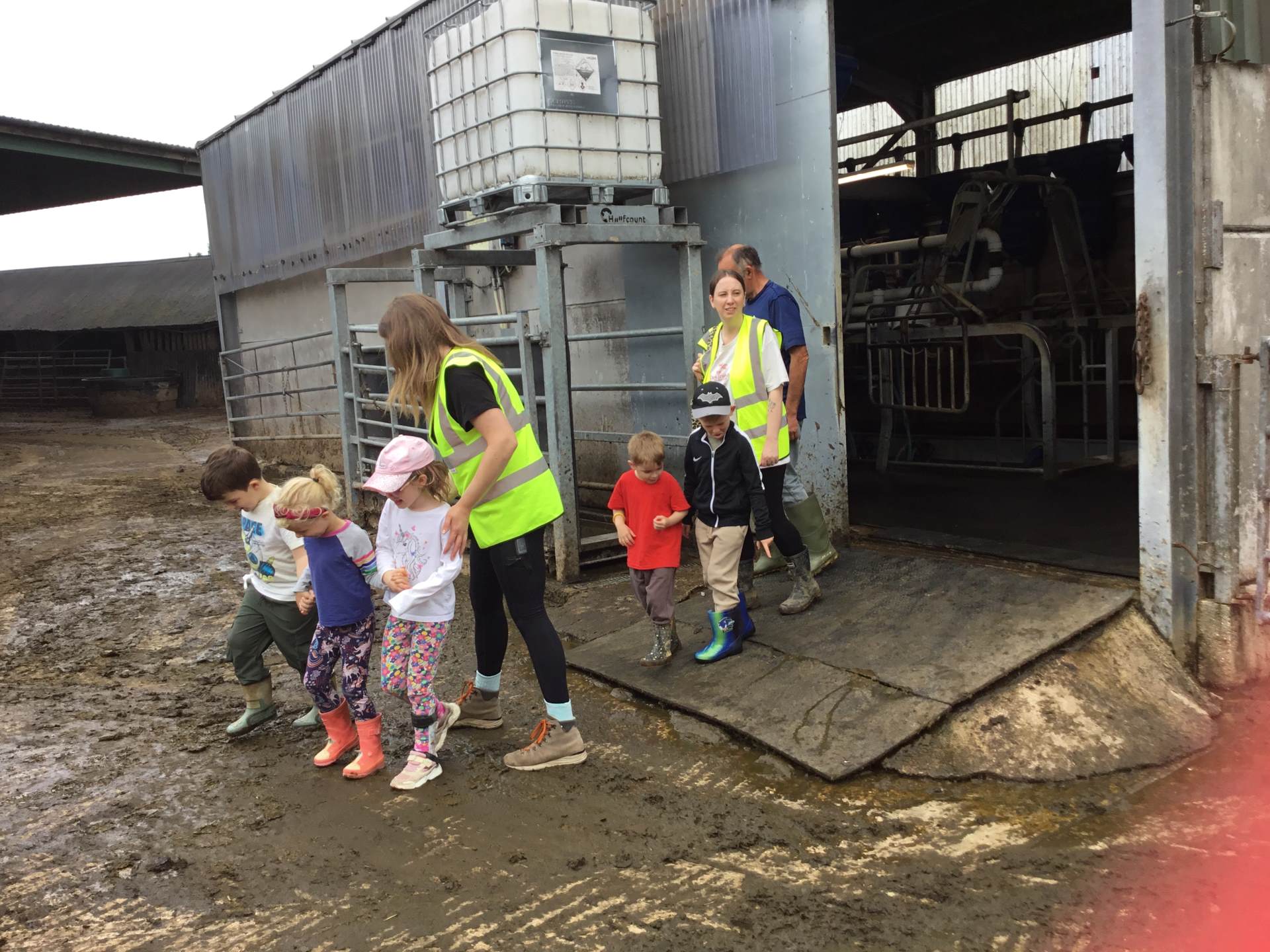 The children were welcomed by the farmers, who guided them around the farm and explained the daily routines involved in caring for and milking the cows.