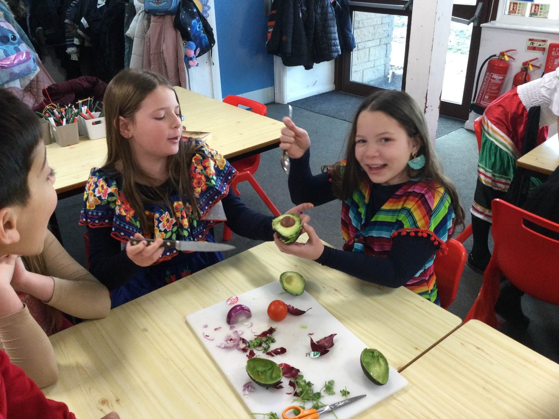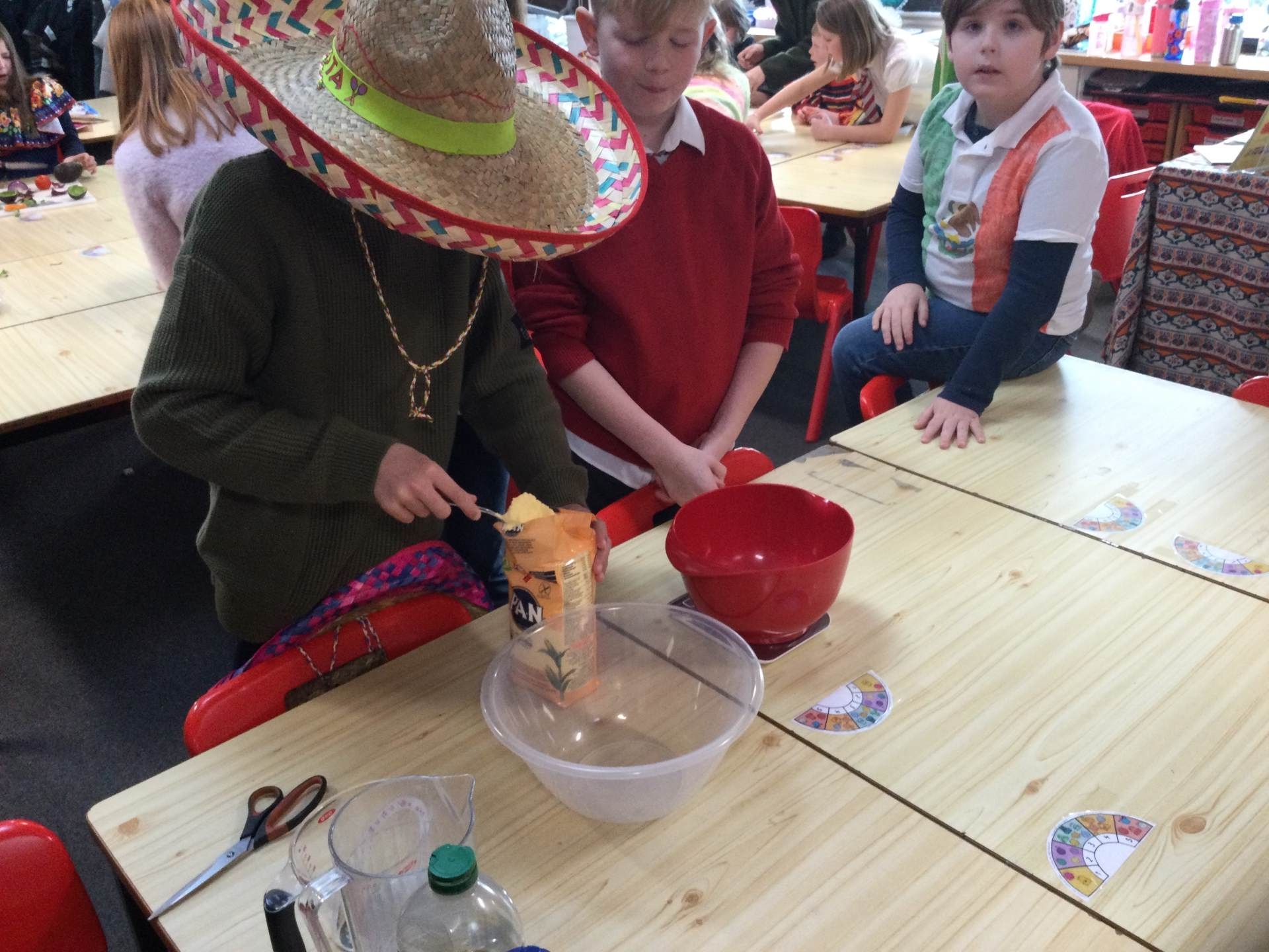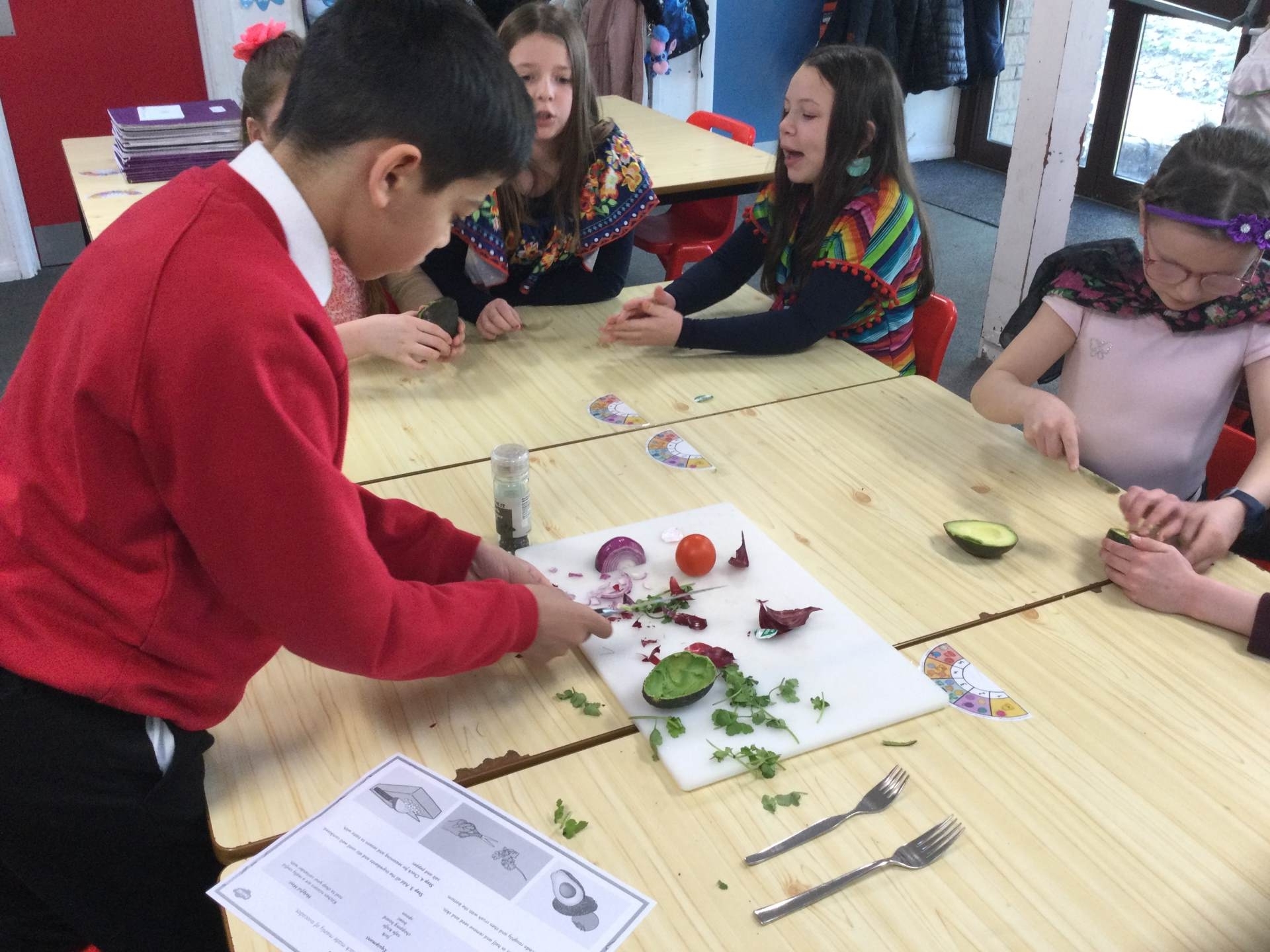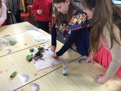 This afternoon we looked at the foods and diet of Mexico and made salsa, guacamole and their own tortillas. Everyone tried something. Some definitely liked it more than others.