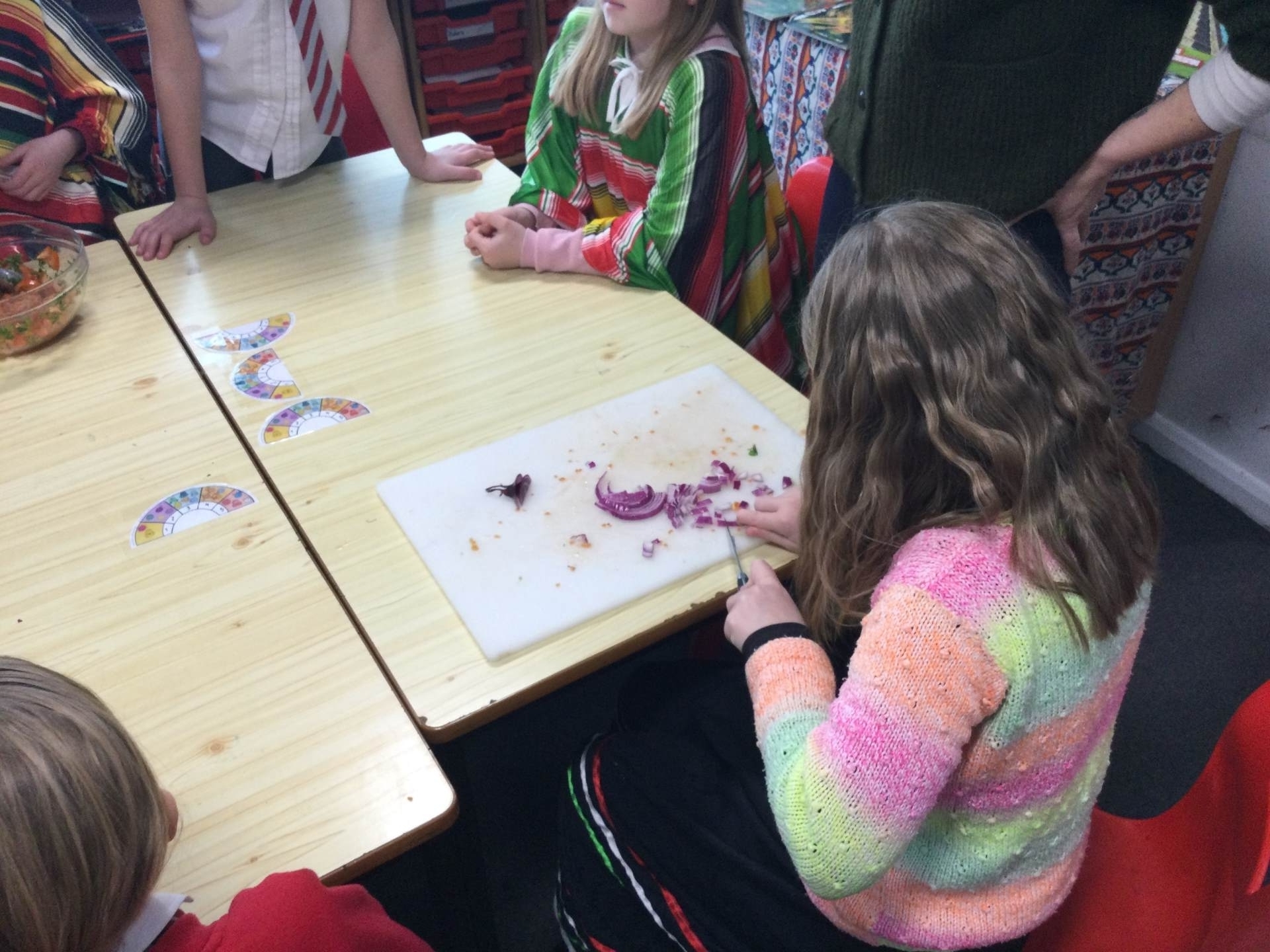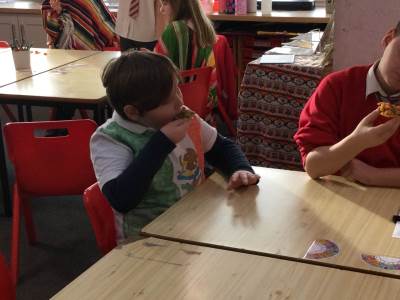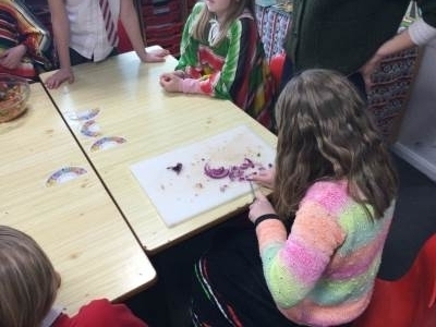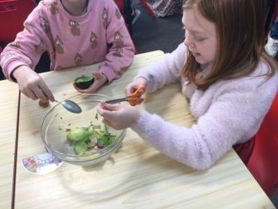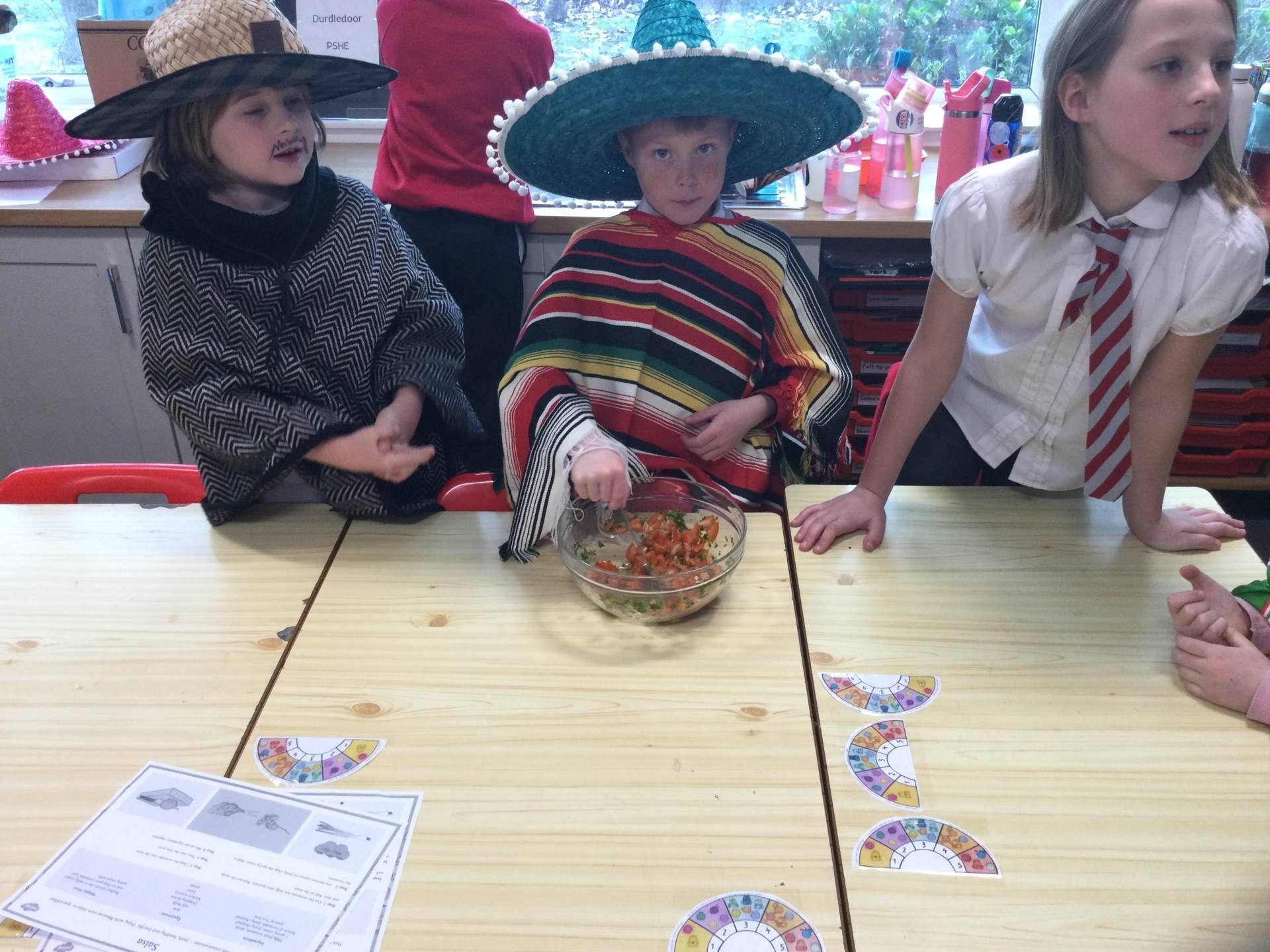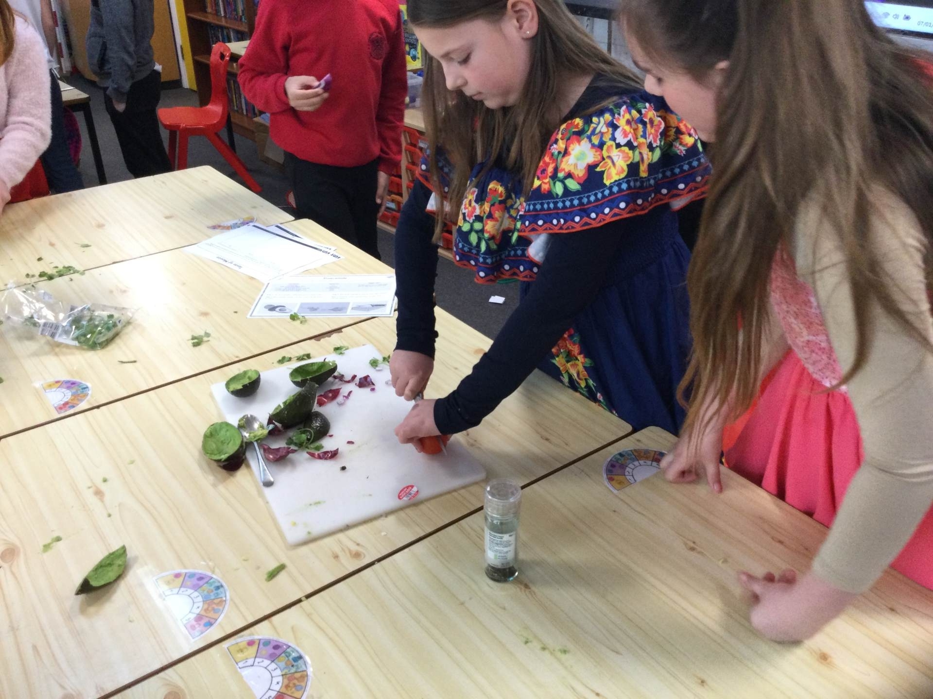This afternoon we looked at the foods and diet of Mexico and made salsa, guacamole and their own tortillas. Everyone tried something. Some definitely liked it more than others.