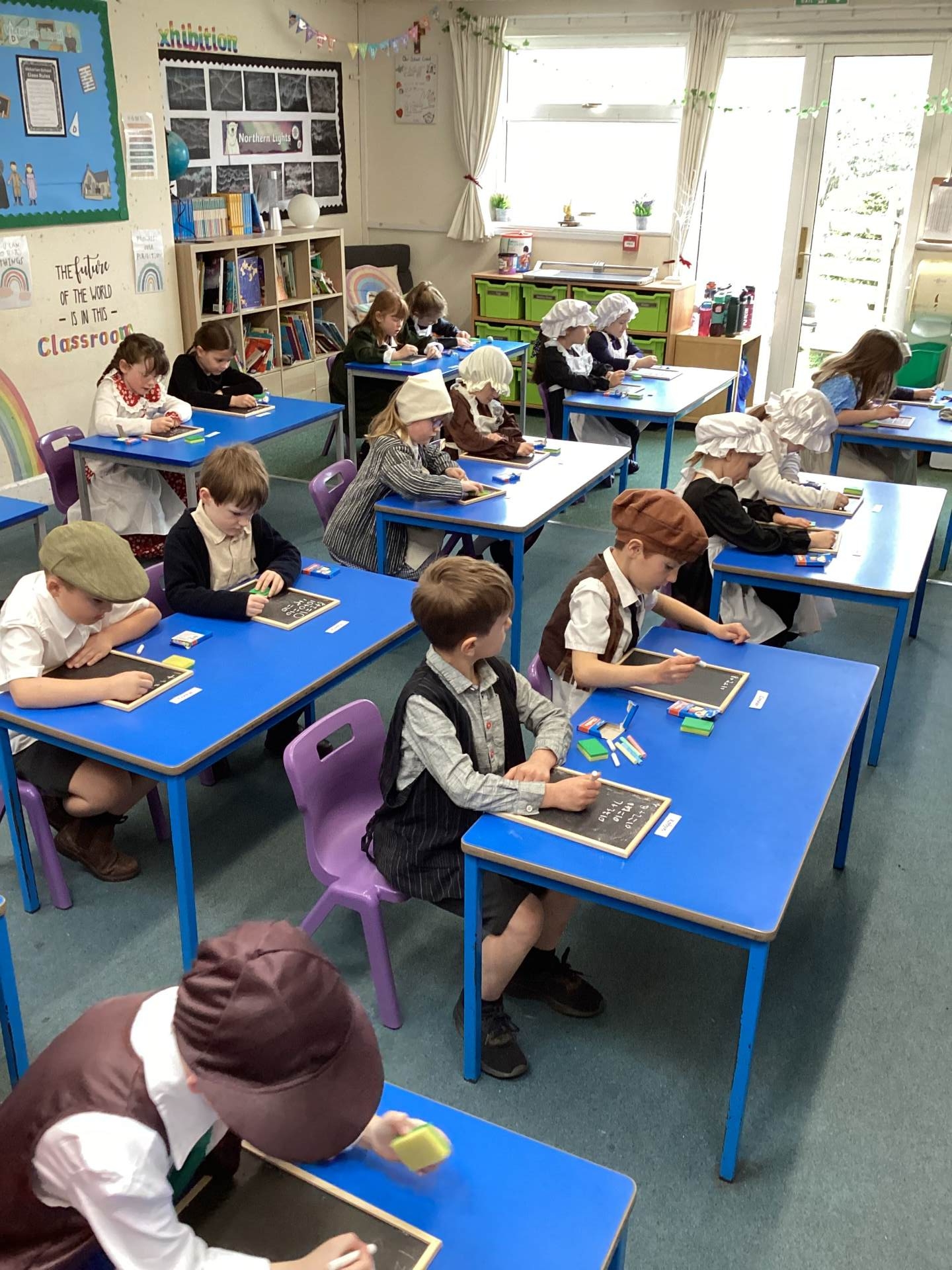 On Tuesday 23rd March 2026, Chesil Class took an unforgettable journey into the past as they transformed their classroom into a Victorian schoolroom. Both children and staff arrived dressed in authentic Victorian attire, setting the scene for a truly immersive experience.
