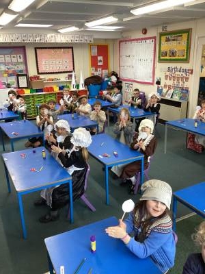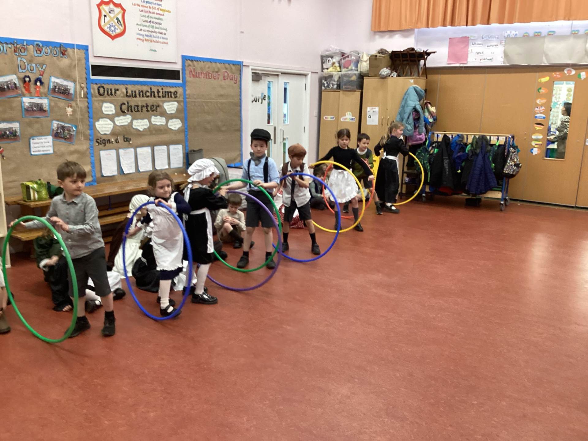 The afternoon brought even more excitement, as pupils enjoyed traditional Victorian games such as marbles and hoops. There was also some light-hearted discipline, with dunce hats being handed out—not only to the pupils but even worn by Mrs Simmons and Mrs Childs! This caused great laughter among the class and added a fun, memorable twist to the day.