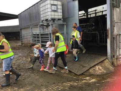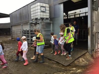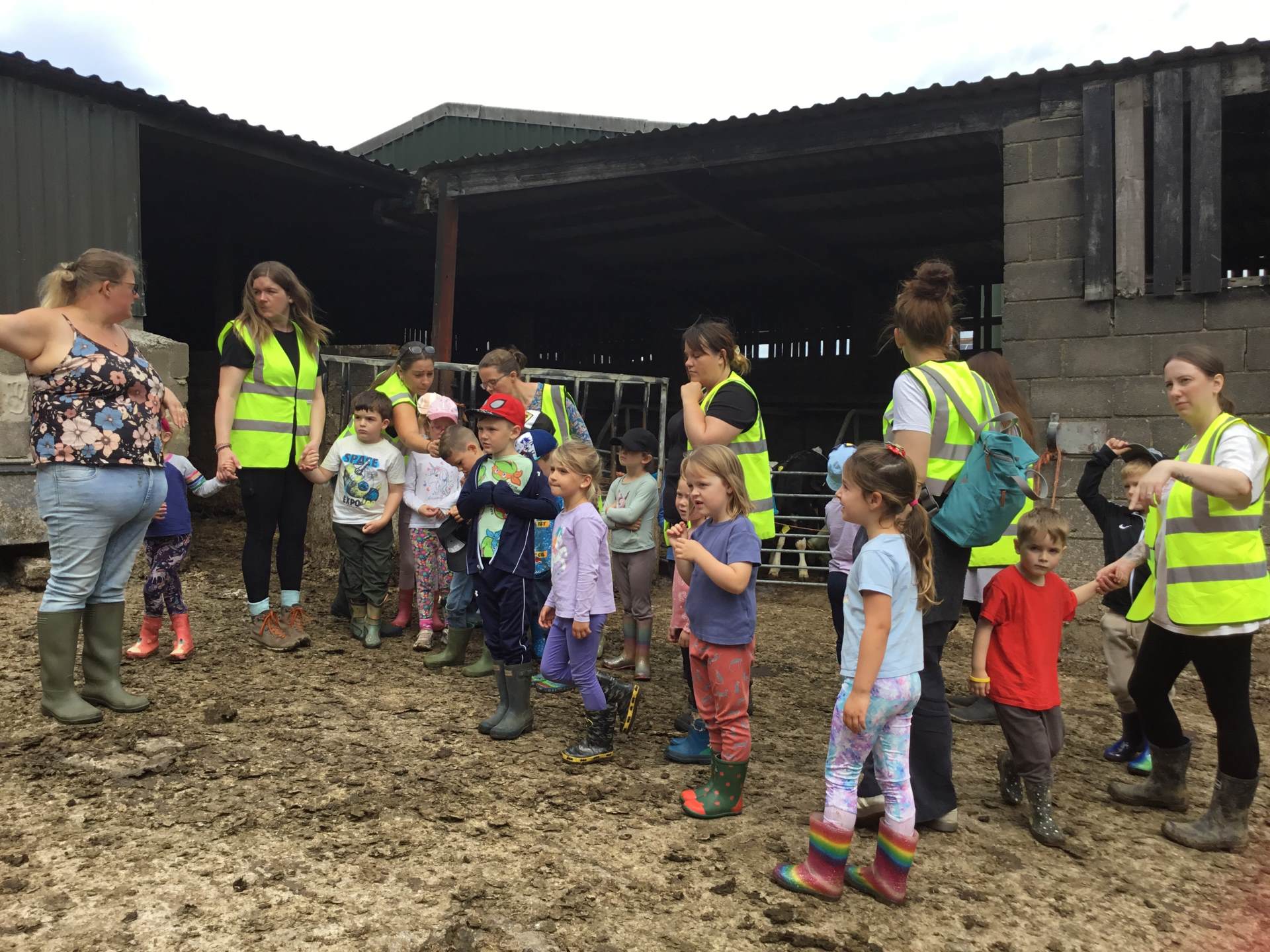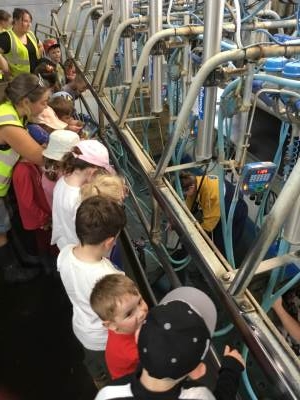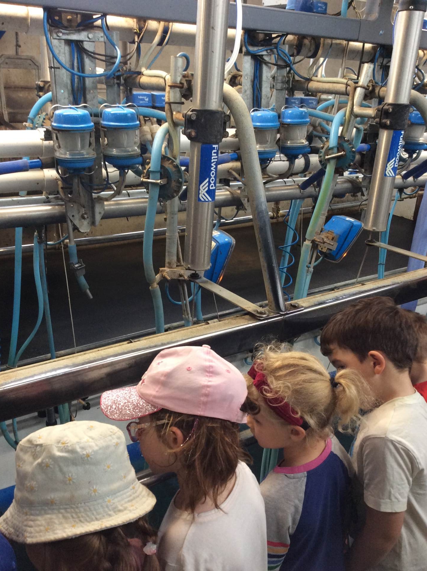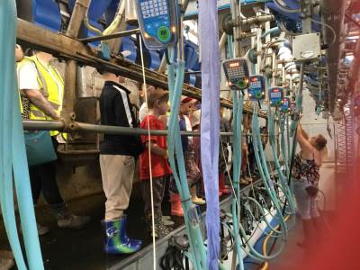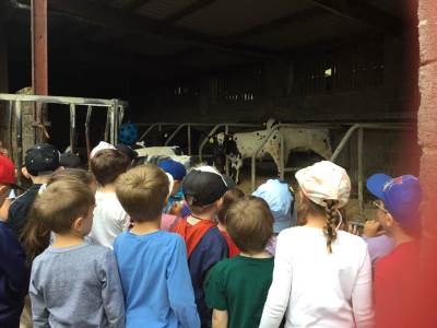 The children were welcomed by the farmers, who guided them around the farm and explained the daily routines involved in caring for and milking the cows.